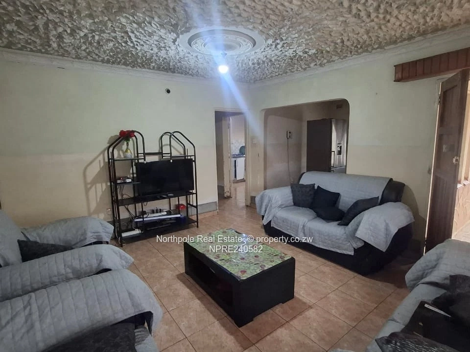 Neat 4bedrooms, ceiling, tiles, 2 toilets, bathroom with tub, lounge, dining,kitchen with sink and some cupboards ,verandah,shared Borehole (solar powered),walled and gated,paved,fowl run.
